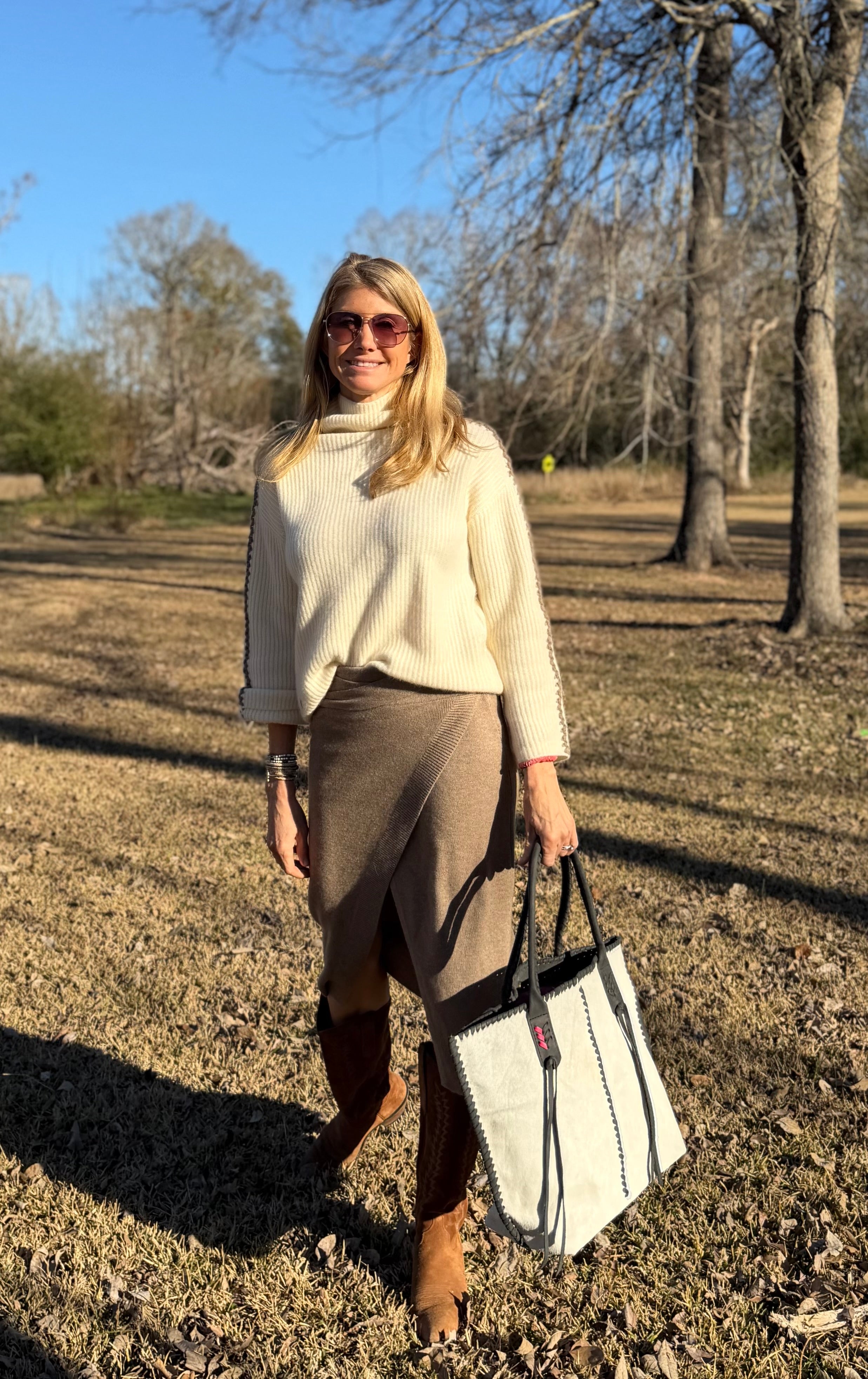 Crafted from the finest 100% Mongolian cashmere, this ecru turtleneck features a cropped, flattering silhouette with refined beige contrast stitching for a modern edge. Incredibly soft, lightweight, and warm, it’s designed to feel luxurious against the skin while pairing effortlessly with high-waisted denim, leather, or layered looks.