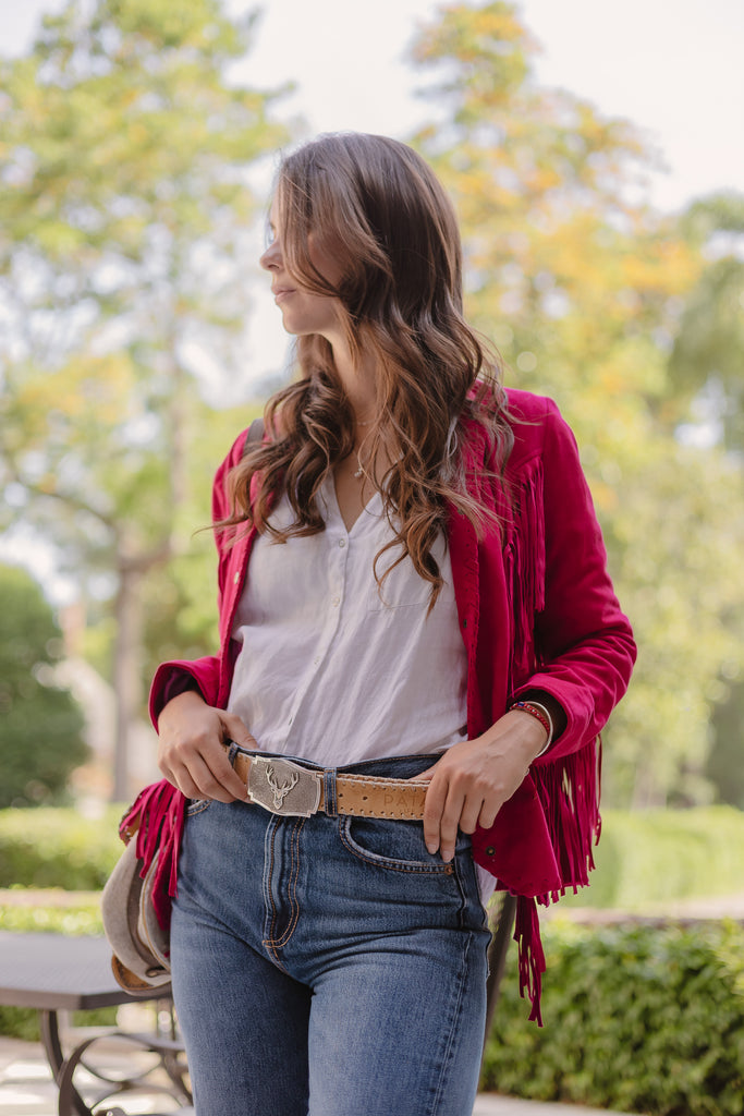 Meet the Fuchsia Dutton Jacket—crafted from premium suede goat leather for the ultimate blend of softness and style. This jacket is as comfortable as it is luxurious, with a buttery texture you’ll never want to take off.