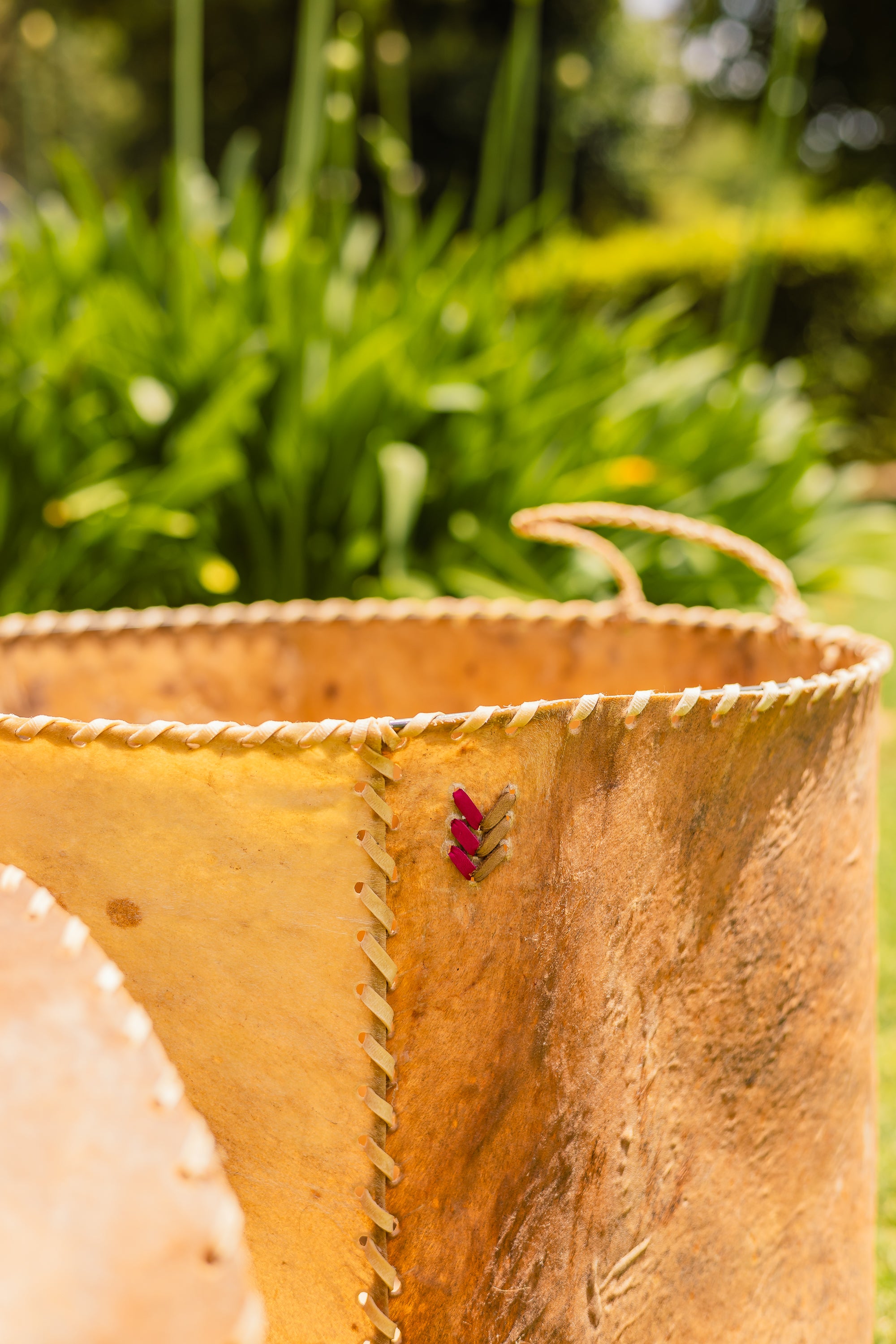 Meticulously handwoven by Argentine artisans, this basket showcases the timeless craftsmanship of rawhide weaving passed down through generations. Each piece is unique, with natural variations that highlight its artisanal character. Strong and refined, it is as practical as it is beautiful—ideal for storing firewood, draping with sheepskins, or elevating any room as a statement piece. A true work of functional art that embodies the spirit of heritage craftsmanship.